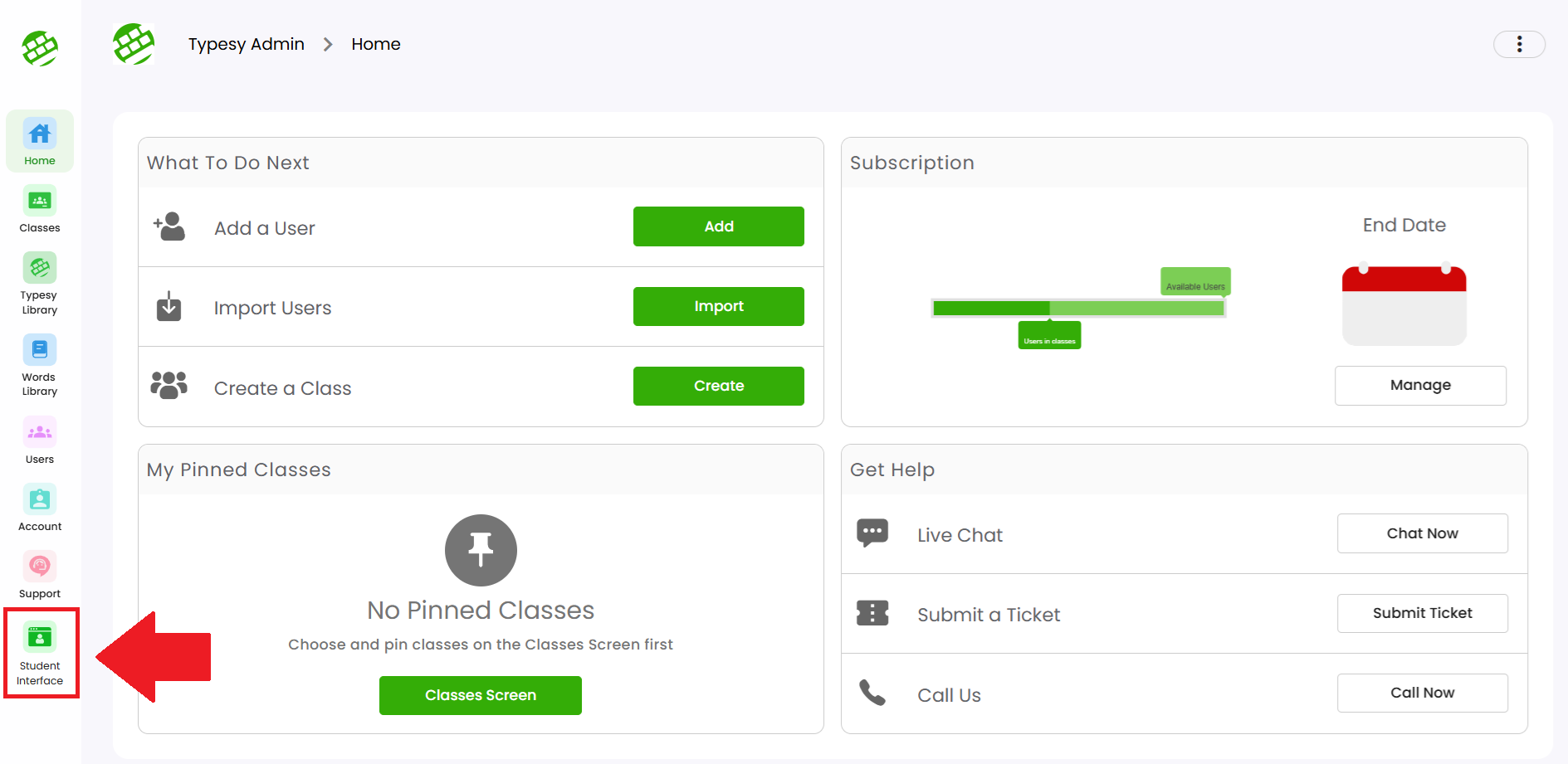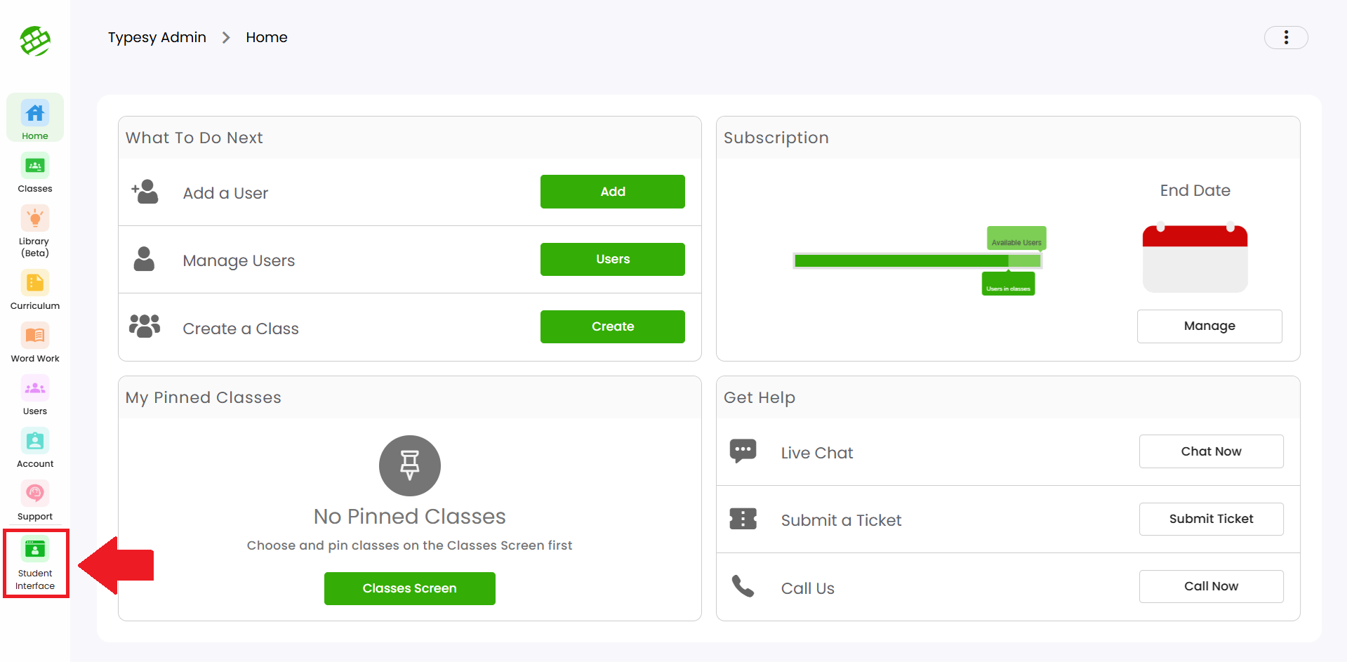 As an Admin or Teacher, you have full access to Typesy’s learning platform—just like your students. You can switch between the Admin Interface and your own Student Interface at any time.