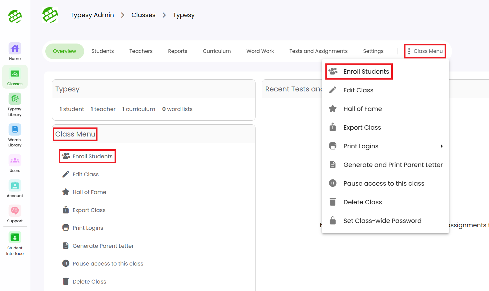 You can definitely enroll a student in multiple classes. However, Typesy recommends avoiding this unless you have a specific reason for the student to be in multiple classes at the same time. 1. To get started, go to the class where you want the ...