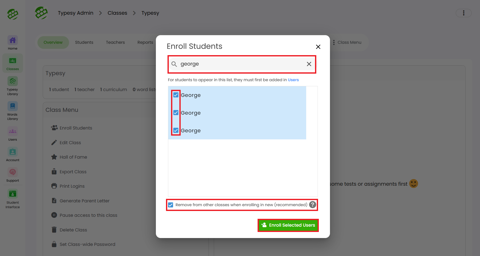 I have students who I want to be in multiple classes. Does Typesy allow it or can they only be enrolled in one class at a time?