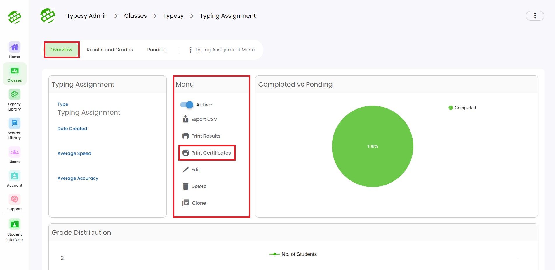 The Print Certificate button will only appear if the student has reached 100% completion for a course (e.g., Home Row, Top Row, etc.) under a curriculum. This means all lessons in the course must be completed before the certificate becomes available.